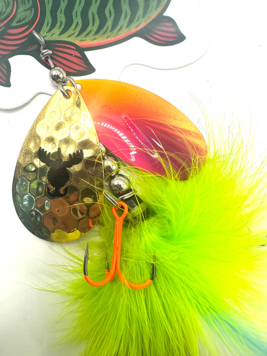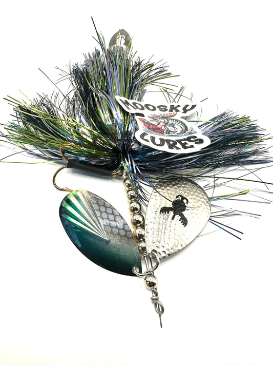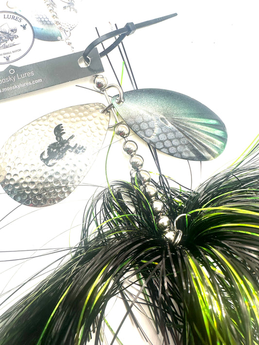 Double 9 custom fluted Hootch blade flowage green with tail spin