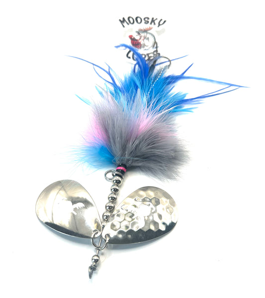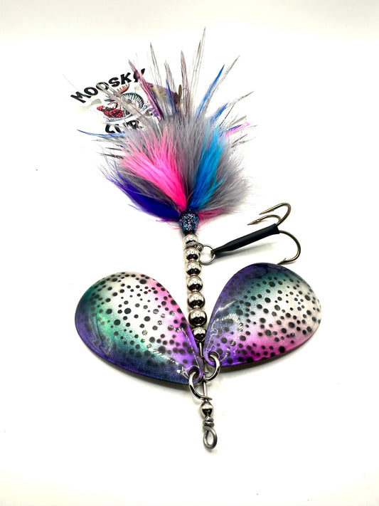 Double 10 Custom Hootch Blades Rainbow Marabou Hackle Mix with Tail Spin