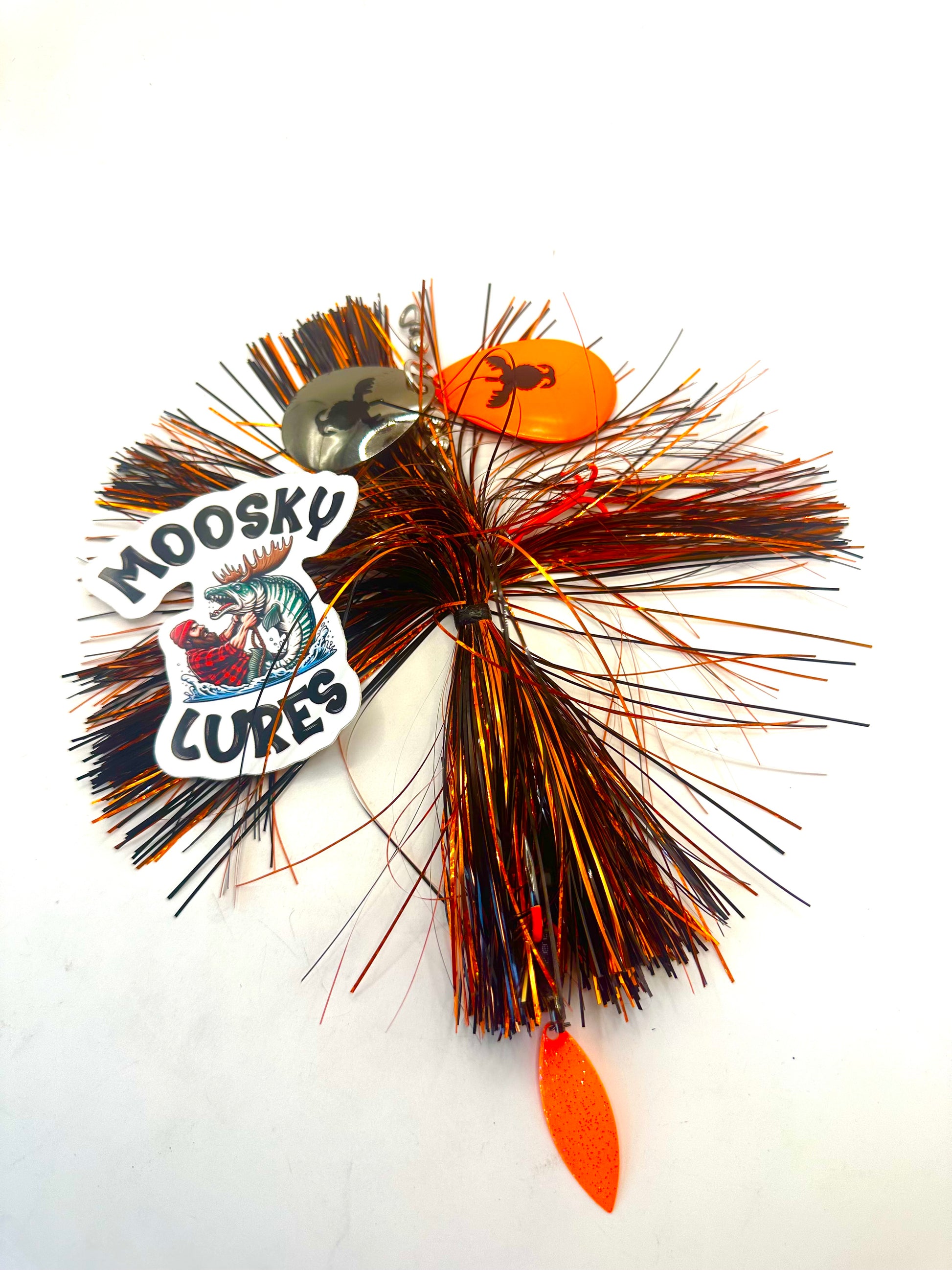 double BKK hooks. 7/8 staggered black and orange with tail spin.