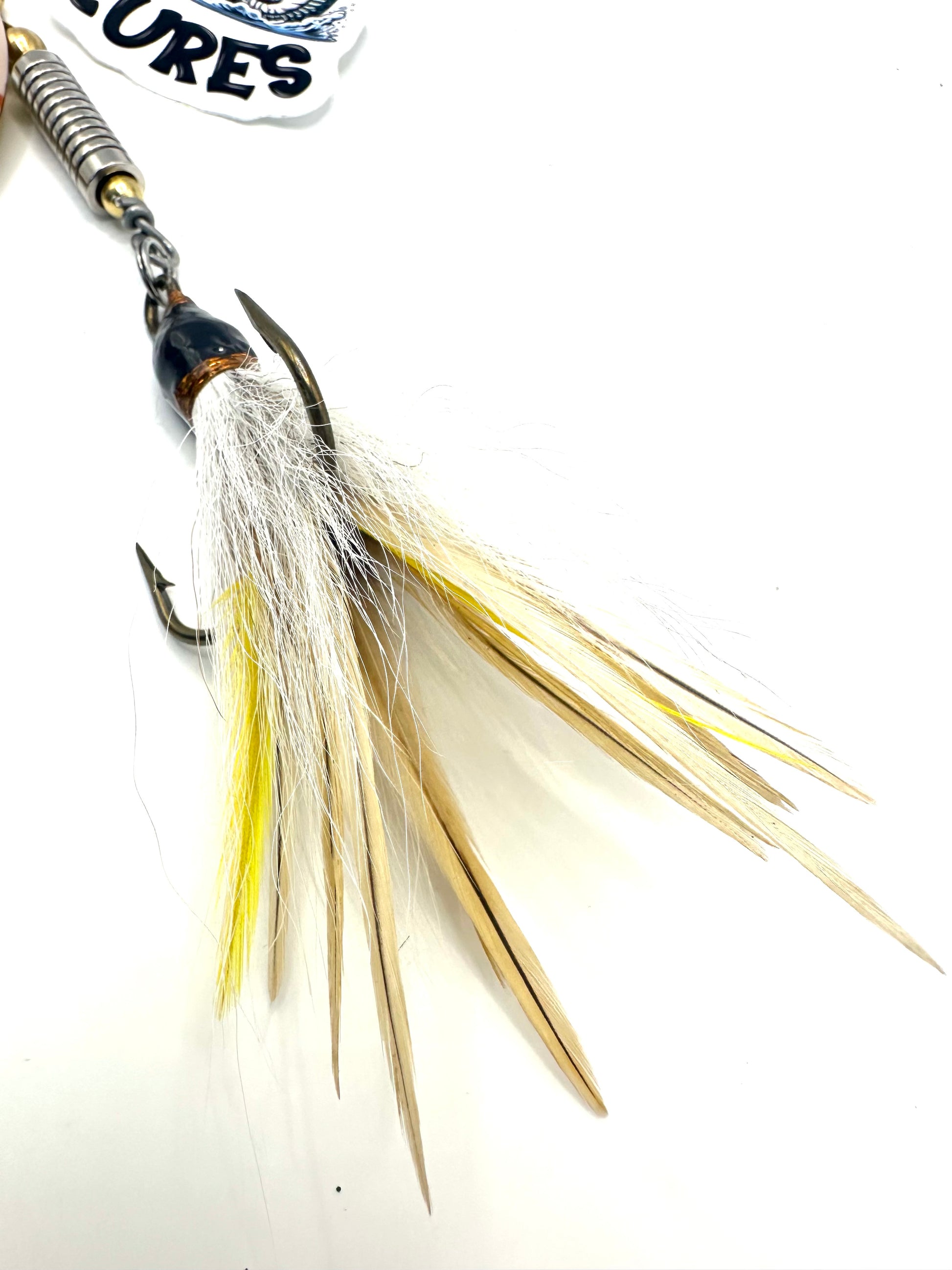 Custom 9 Fluted Blade painted by Hootch! Crème Deer Hair dressed treble.
