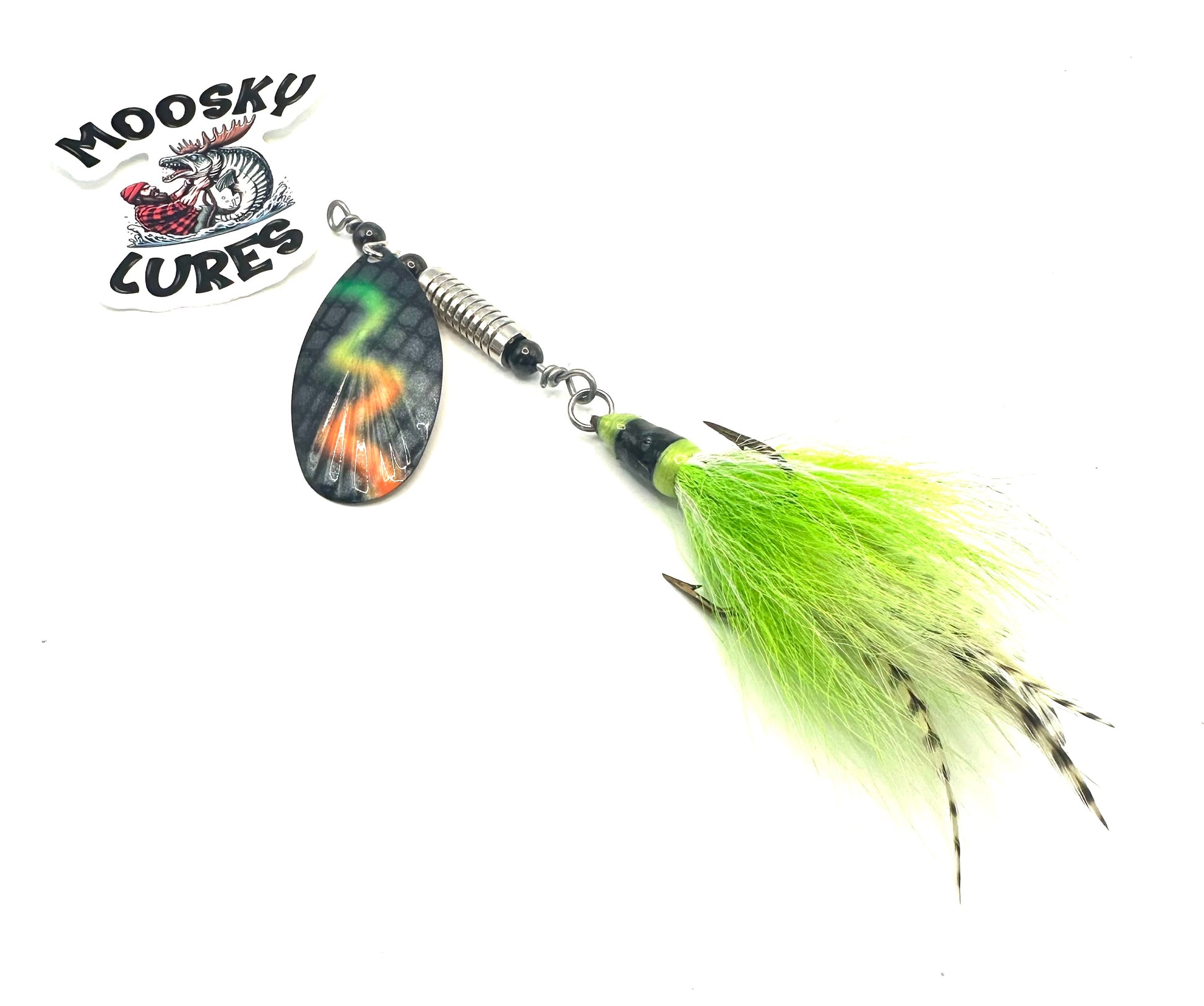 Custom 9 Fluted Blade painted by Hootch! Lime Deer Hair dressed treble.